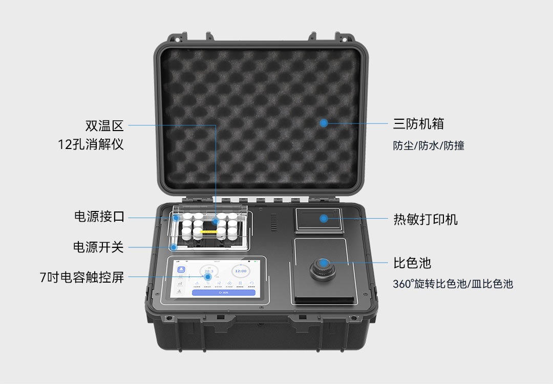 在本次技能競賽中使用的LH-C600便攜式多參數(shù)水質(zhì)測定儀,是連華科技首款從單片機(jī)升級為安卓系統(tǒng)的儀器,集LHOS操作系統(tǒng)、360°旋轉(zhuǎn)管比色、雙比色系統(tǒng)、雙溫區(qū)消解、個(gè)性化定制、數(shù)據(jù)智能分析等多種新技術(shù)功能于一身,實(shí)現(xiàn)了水質(zhì)檢測設(shè)備的多線程任務(wù)處理、多元化場景支持和流暢的用戶體驗(yàn),使水質(zhì)檢測工作變得更加智能、精準(zhǔn)和高效。儀器支持COD、氨氮、總磷、總氮、懸浮物、色度、濁度、重金屬、有機(jī)污染物和無機(jī)污染物等38項(xiàng)水質(zhì)指標(biāo)檢測,兼顧便利性的同時(shí)又不失實(shí)驗(yàn)室型儀器的精確度。