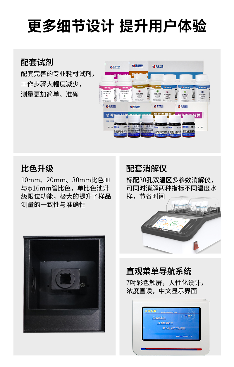 10、配套消解儀:標配30孔雙溫區(qū)多參數(shù)消解儀(可選配),可同時消解兩種指標不同溫度水樣,節(jié)省時間